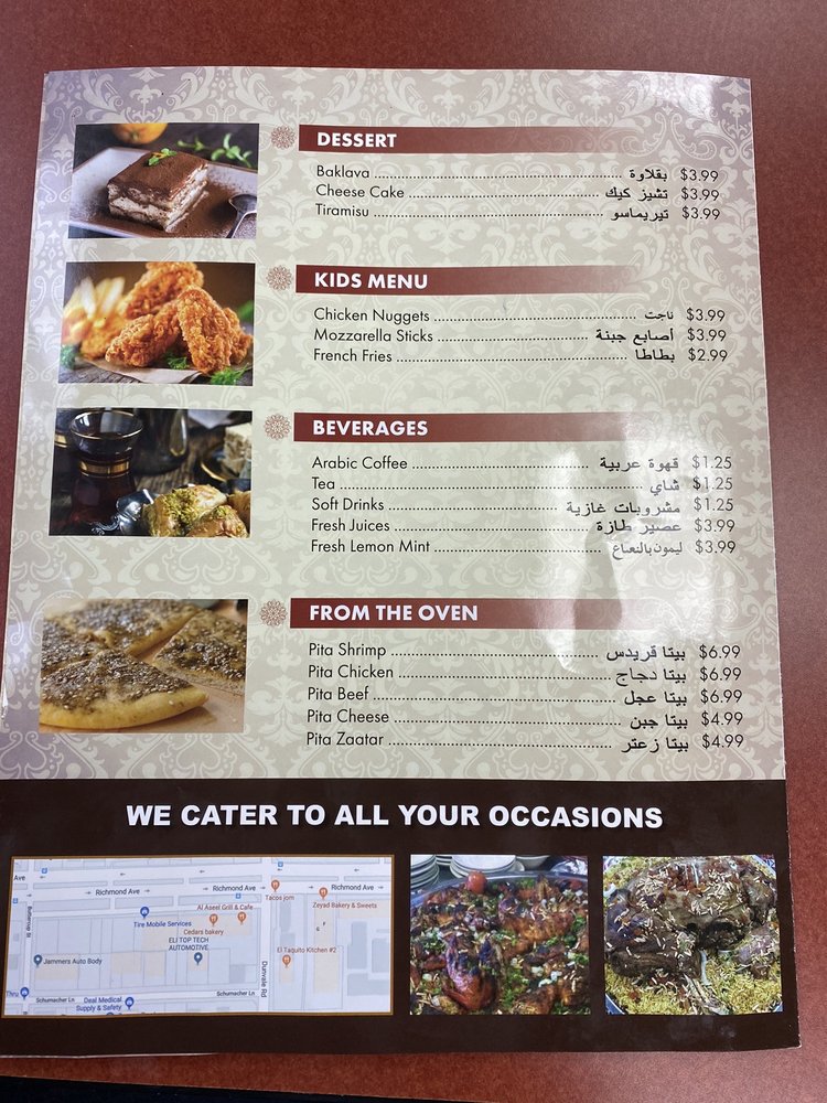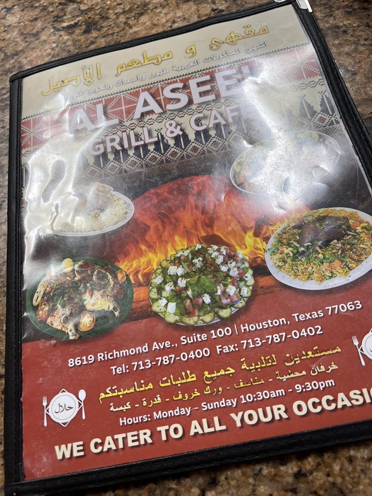Al Aseel Grill & Cafe in Houston, TX offers a Middle Eastern-Mediterranean cuisine experience with a variety of menu options. Customers rave about the flavorful and well-seasoned meats, including juicy falafel and perfectly grilled kebabs. The restaurant is family-owned, providing a welcoming atmosphere for all guests. Highlights include generous portions, delicious hummus, addictive pita bread, and crispy fried chicken. The restaurant is praised for its attentive service, VIP treatment for catering events, and affordable prices. The lamb and chicken kebabs are fan favorites, served with fresh salads and flavorful basmati rice. Don't miss out on the baklava dessert to satisfy your sweet tooth. Al Aseel Grill & Cafe is a must-visit for a genuine taste of traditional Middle Eastern cuisine in a friendly environment.