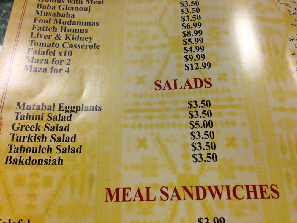 Single portion: baba ghanouj, Turkish salad, hummus and cucumber salad.