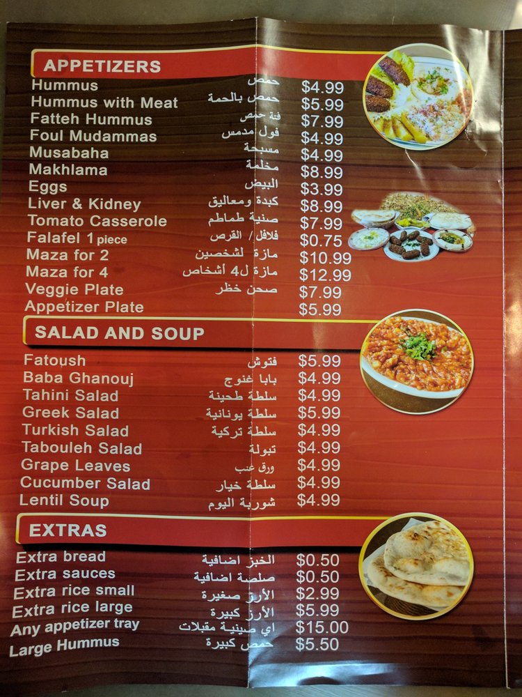 Tender half chicken seasoned with Middle Eastern spices, served over saffron rice, accompanied by a fresh cucumber and tomato salad.